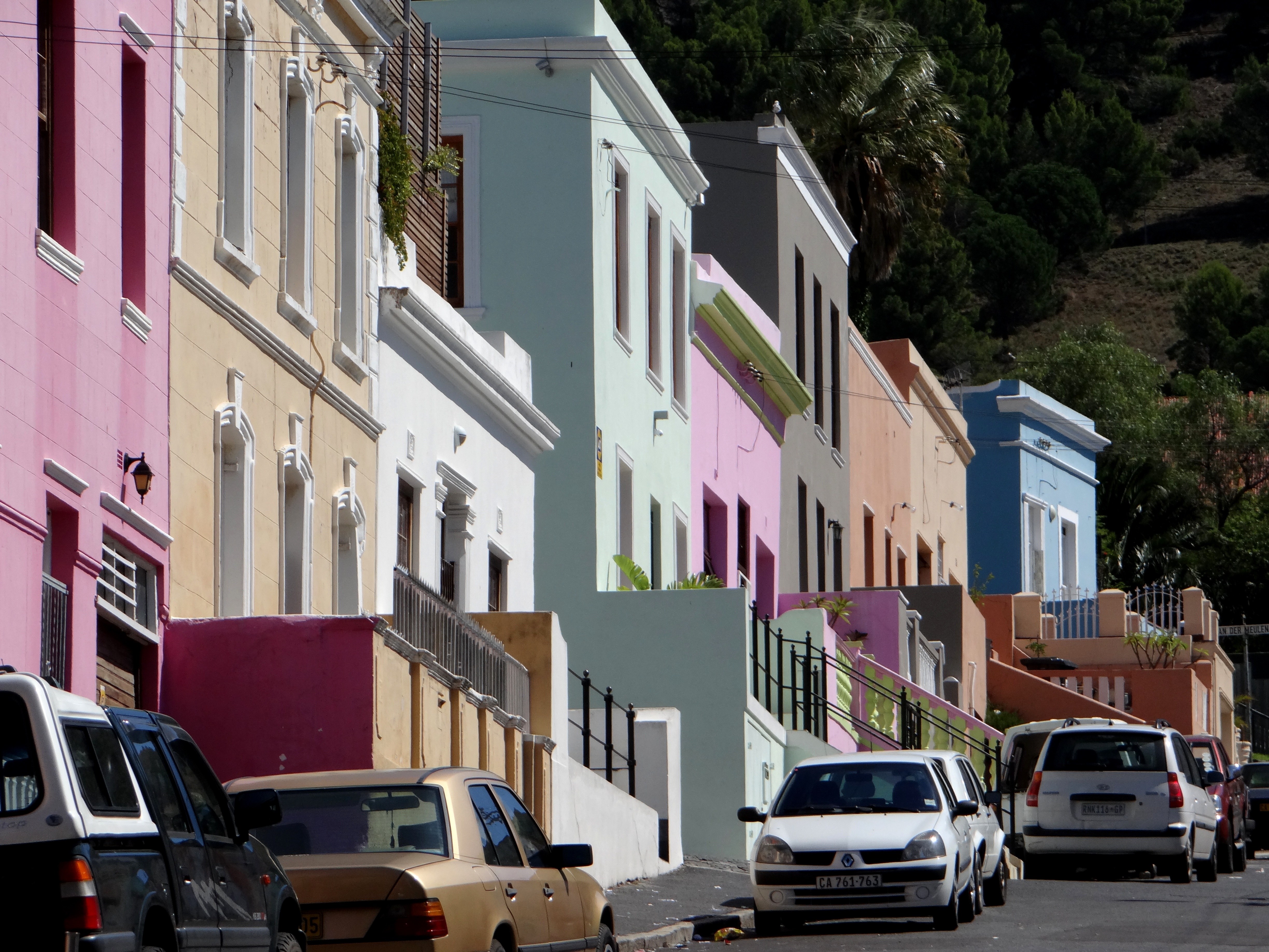 Walking up Wale street I am greeted by the colorful houses of the Bo Kaap